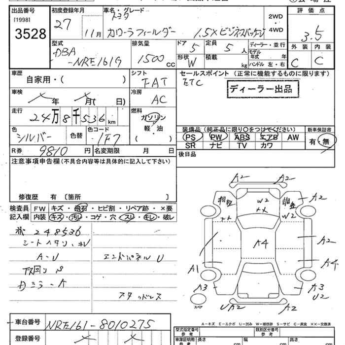TOYOTA COROLLA FIELDER - лот 3528