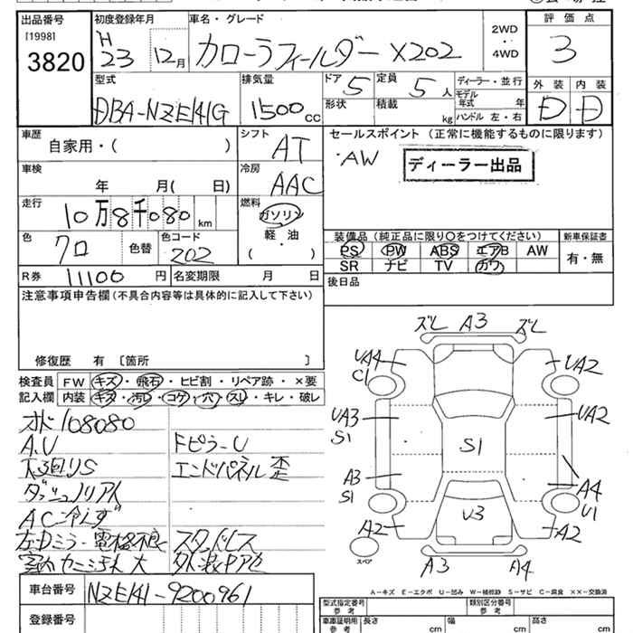 TOYOTA COROLLA FIELDER - лот 3820