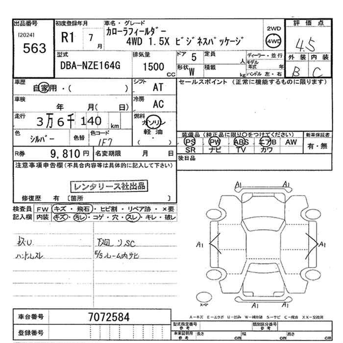 TOYOTA COROLLA FIELDER - лот 563