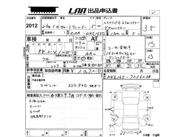 TOYOTA COROLLA FIELDER - лот 2012