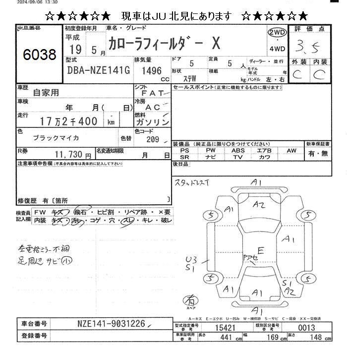 TOYOTA COROLLA FIELDER - лот 6038