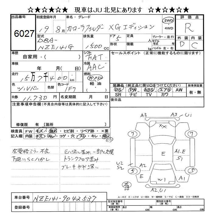 TOYOTA COROLLA FIELDER - лот 6027