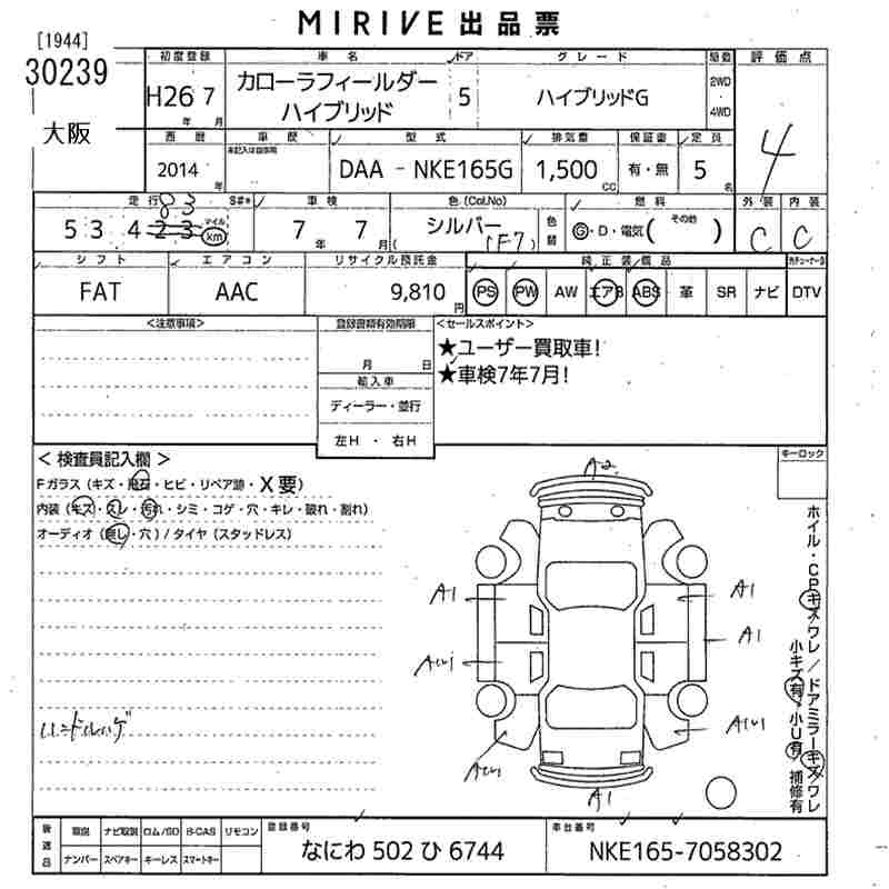 TOYOTA COROLLA FIELDER - лот 30239