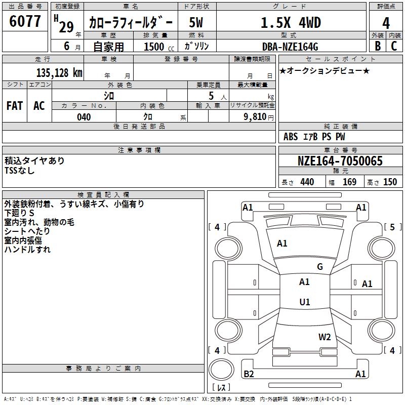 TOYOTA COROLLA FIELDER - лот 6077