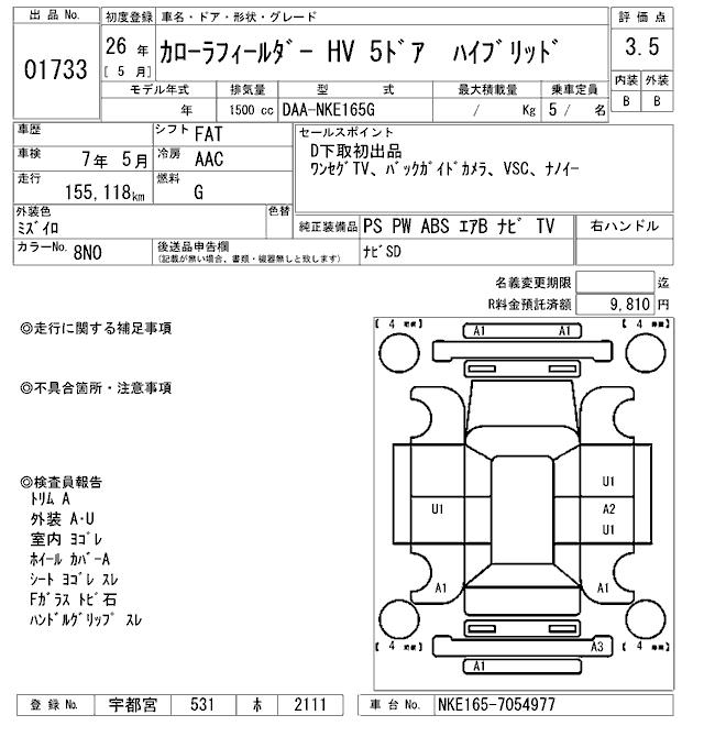 TOYOTA COROLLA FIELDER - лот 1733