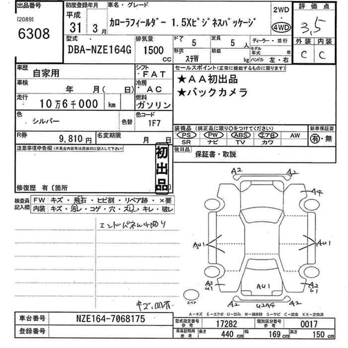TOYOTA COROLLA FIELDER - лот 6308