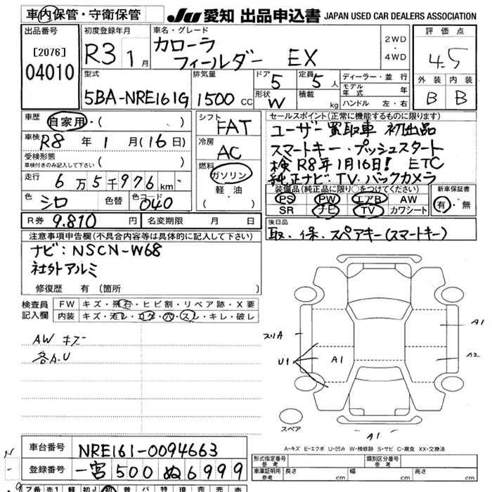 TOYOTA COROLLA FIELDER - лот 4010