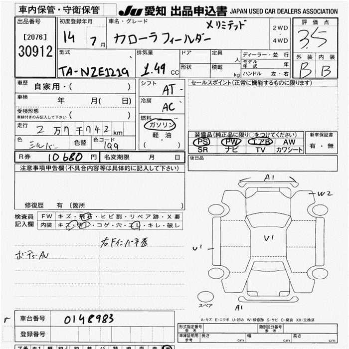 TOYOTA COROLLA FIELDER - лот 30912