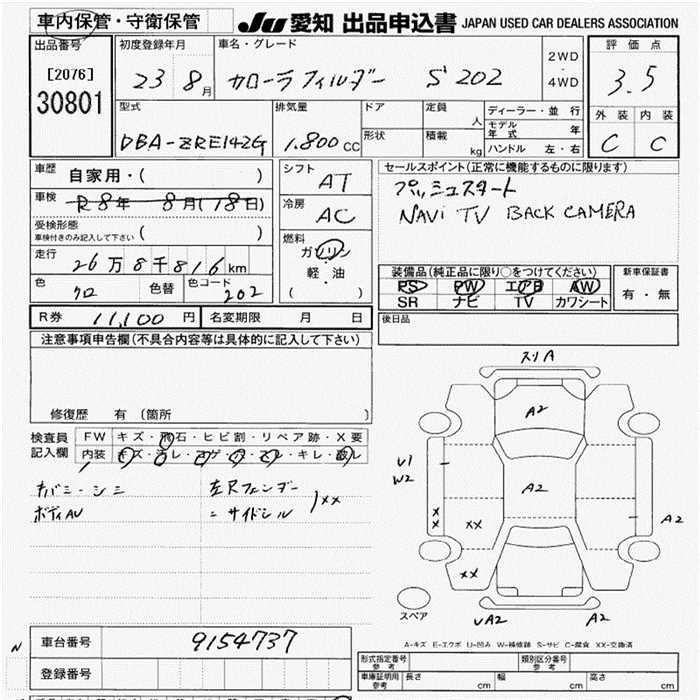 TOYOTA COROLLA FIELDER - лот 30801