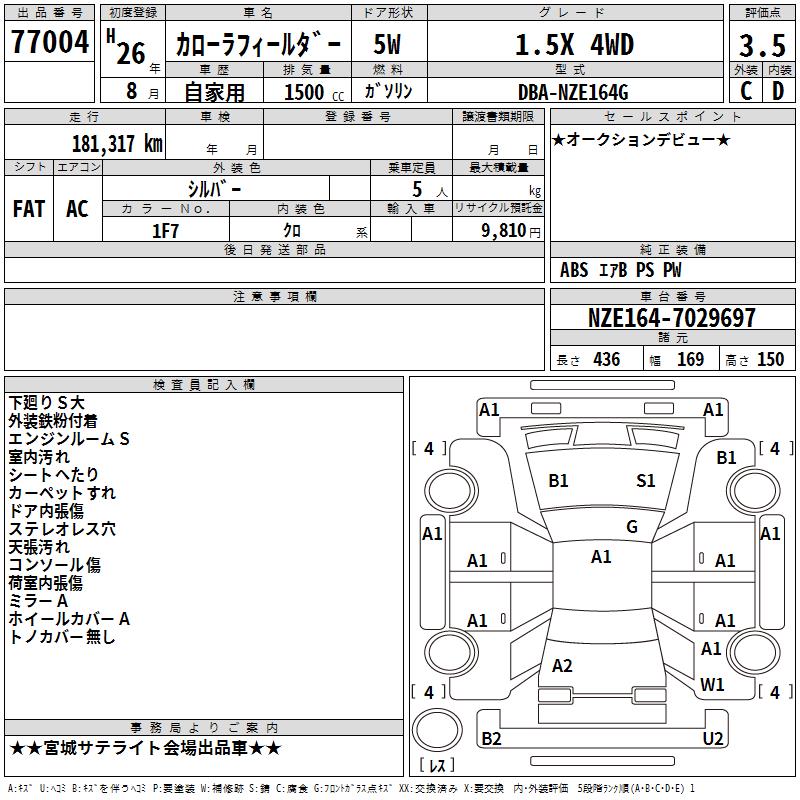 TOYOTA COROLLA FIELDER - лот 77004