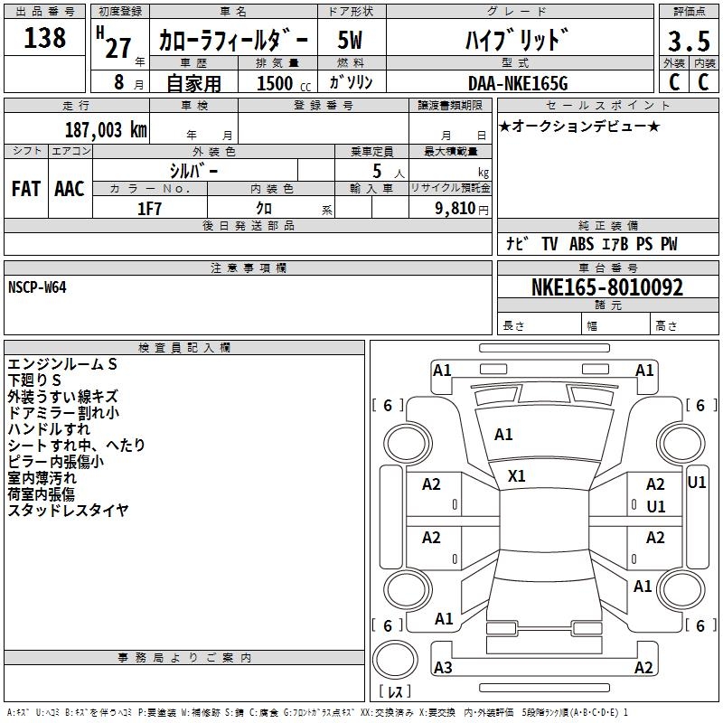 TOYOTA COROLLA FIELDER - лот 138
