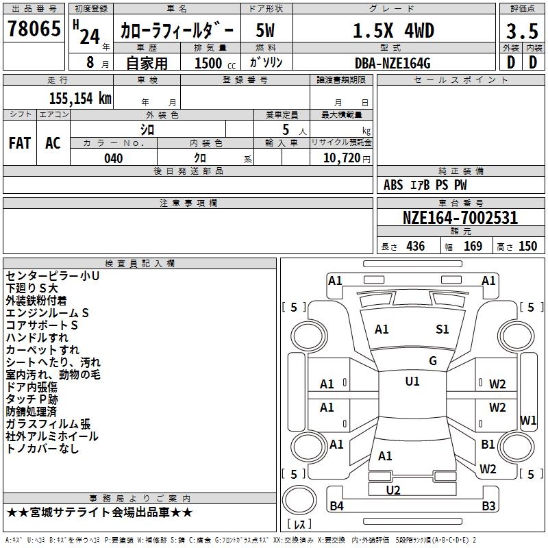 TOYOTA COROLLA FIELDER - лот 78065