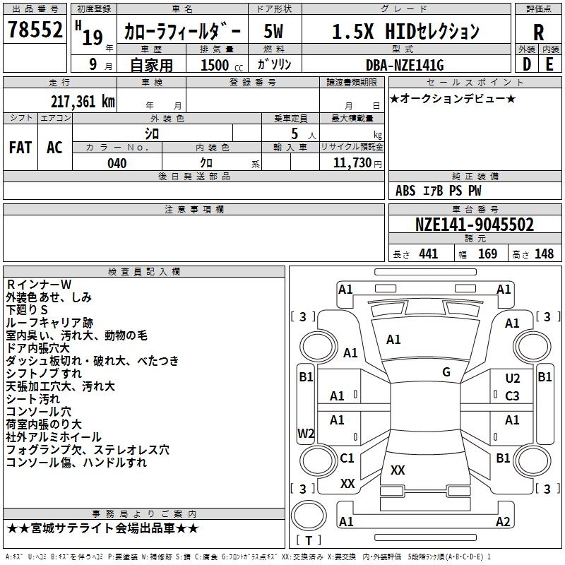 TOYOTA COROLLA FIELDER - лот 78552