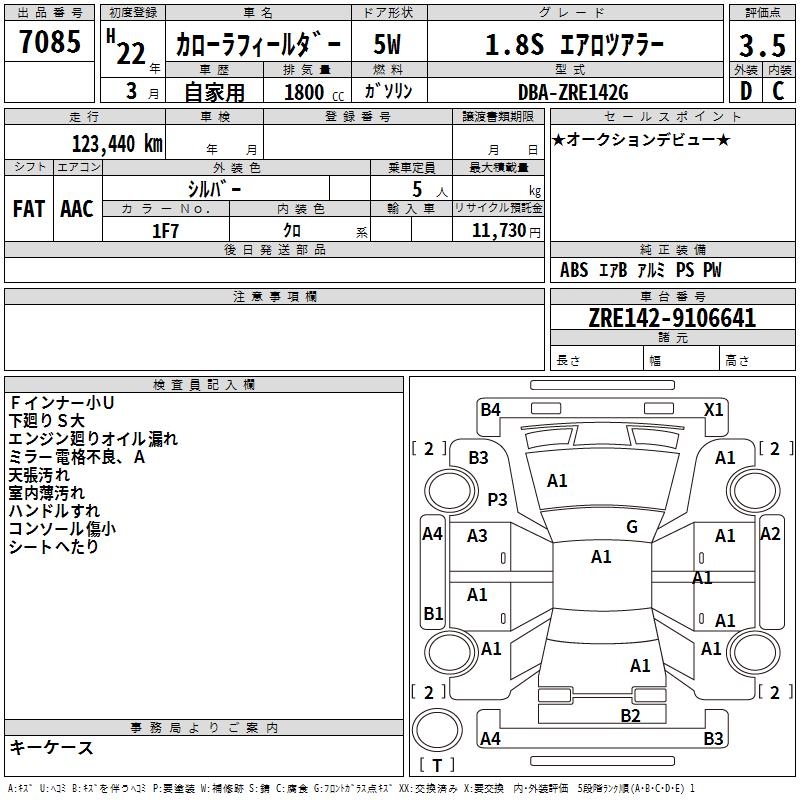 TOYOTA COROLLA FIELDER - лот 7085