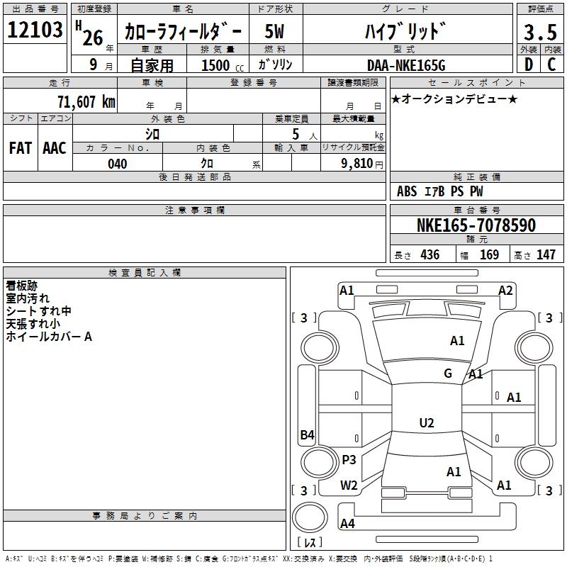 TOYOTA COROLLA FIELDER - лот 12103