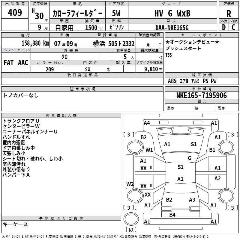 TOYOTA COROLLA FIELDER - лот 409
