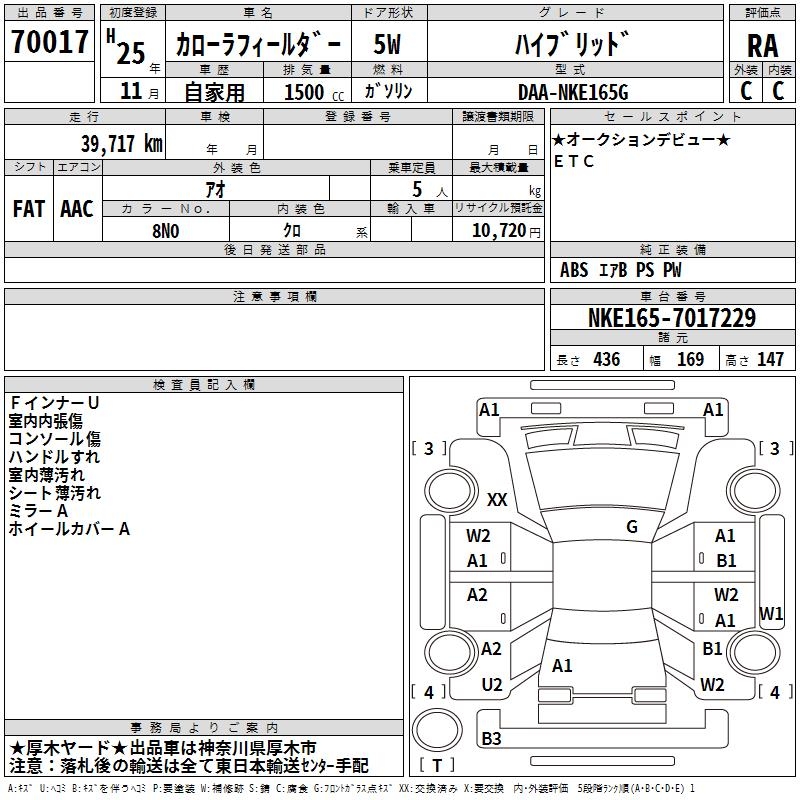 TOYOTA COROLLA FIELDER - лот 70017