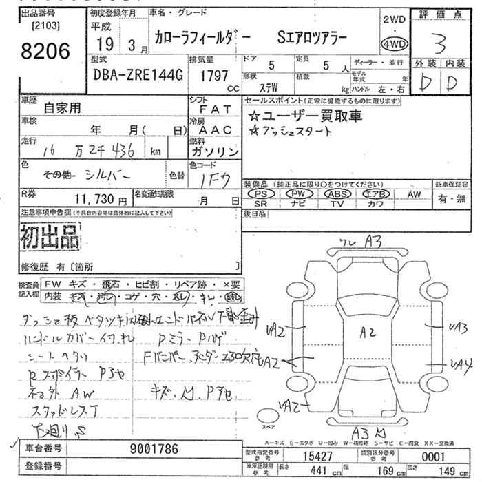 TOYOTA COROLLA FIELDER - лот 8206