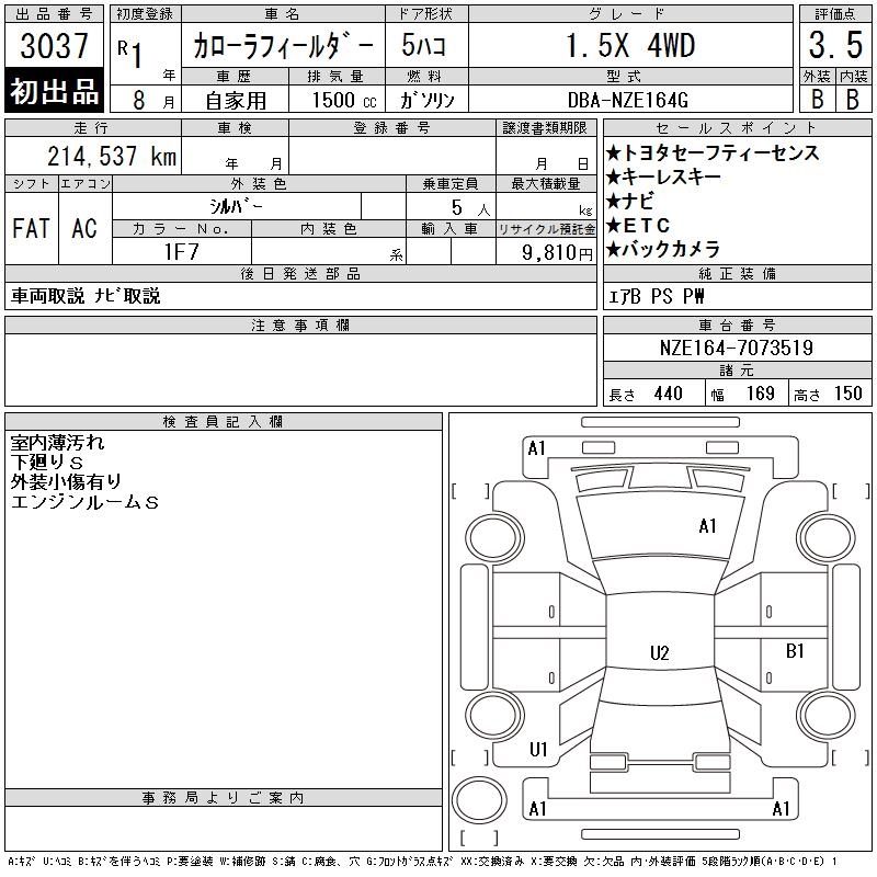 TOYOTA COROLLA FIELDER - лот 3037