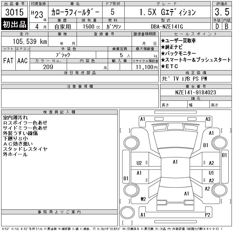 TOYOTA COROLLA FIELDER - лот 3015