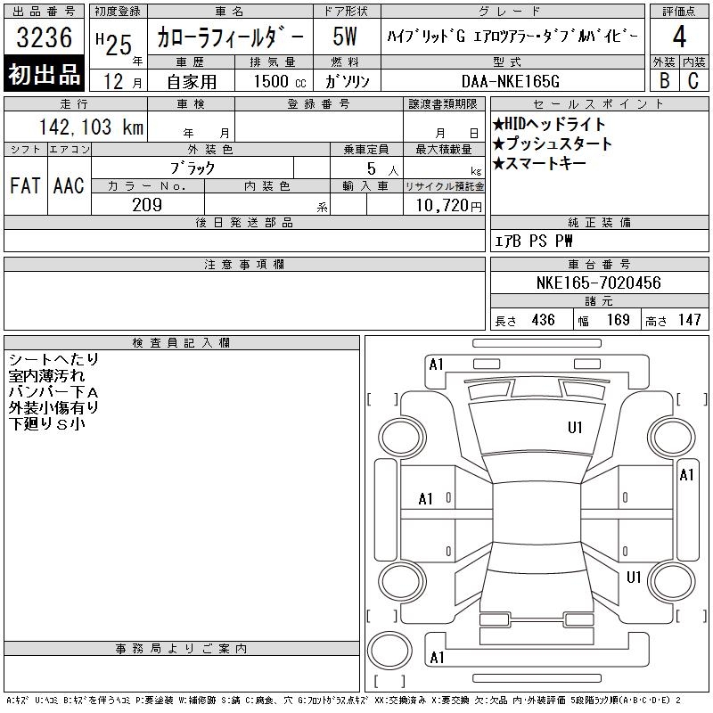 TOYOTA COROLLA FIELDER - лот 3236