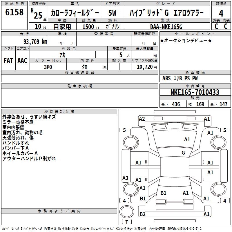 TOYOTA COROLLA FIELDER - лот 6158