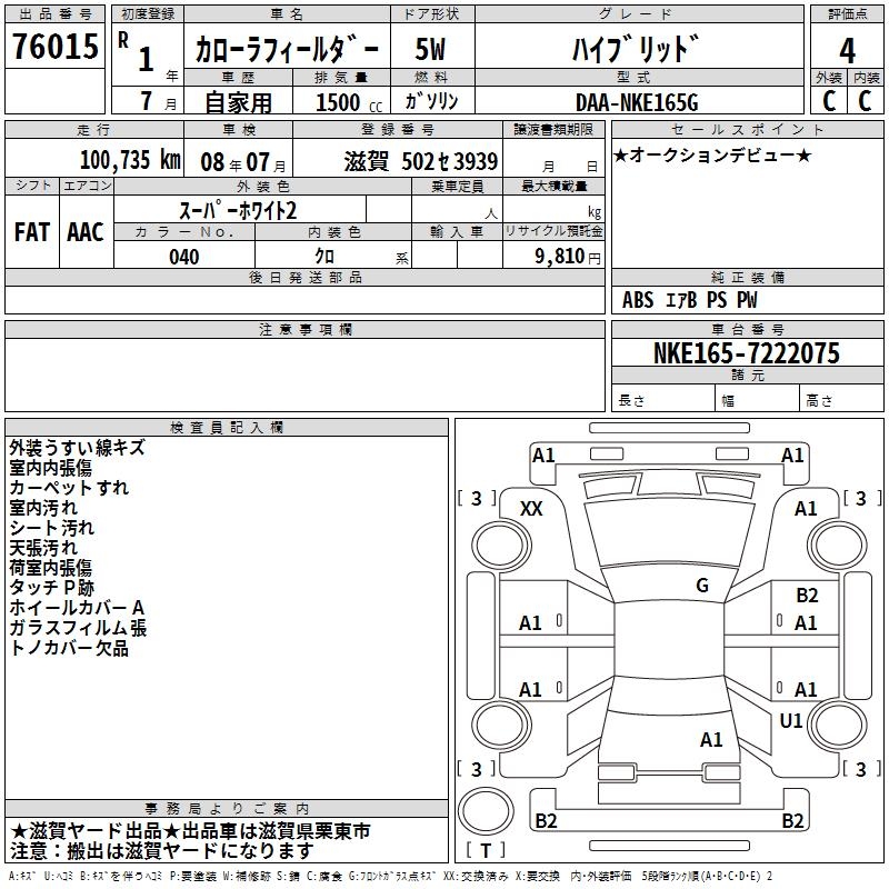 TOYOTA COROLLA FIELDER - лот 76015