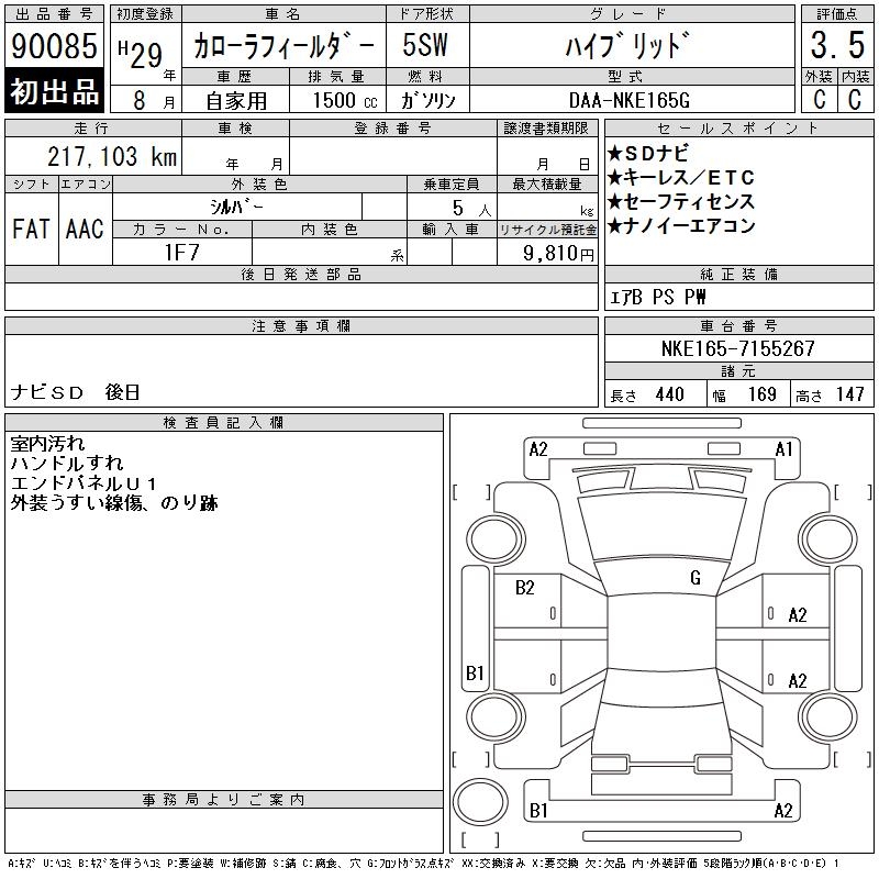TOYOTA COROLLA FIELDER - лот 90085