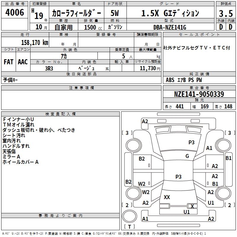 TOYOTA COROLLA FIELDER - лот 4006