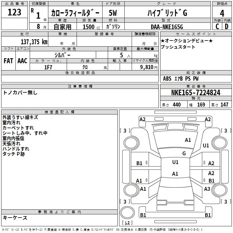 TOYOTA COROLLA FIELDER - лот 123
