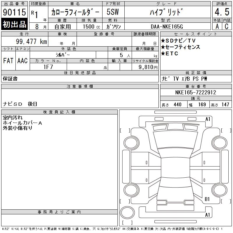 TOYOTA COROLLA FIELDER - лот 90115