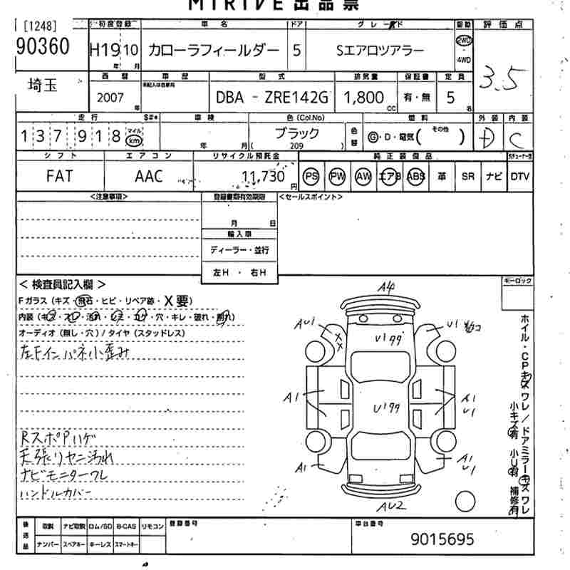 TOYOTA COROLLA FIELDER - лот 90360