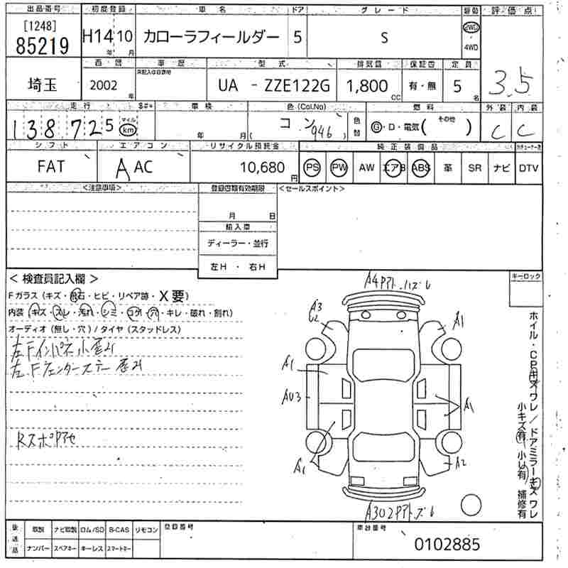 TOYOTA COROLLA FIELDER - лот 85219