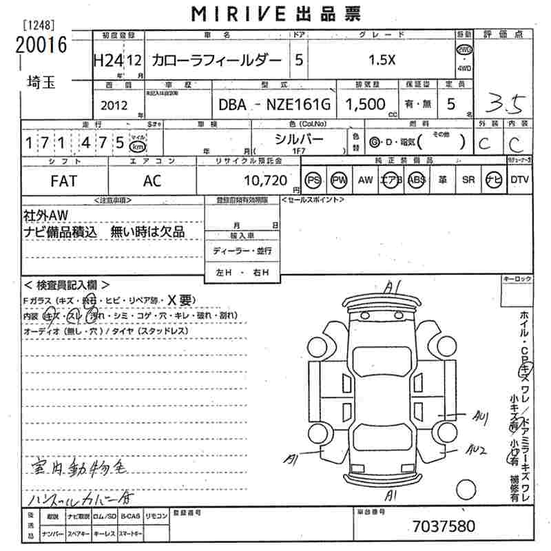 TOYOTA COROLLA FIELDER - лот 20016