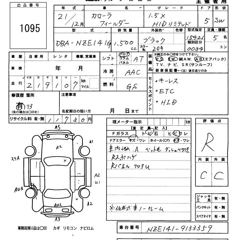 TOYOTA COROLLA FIELDER - лот 1095