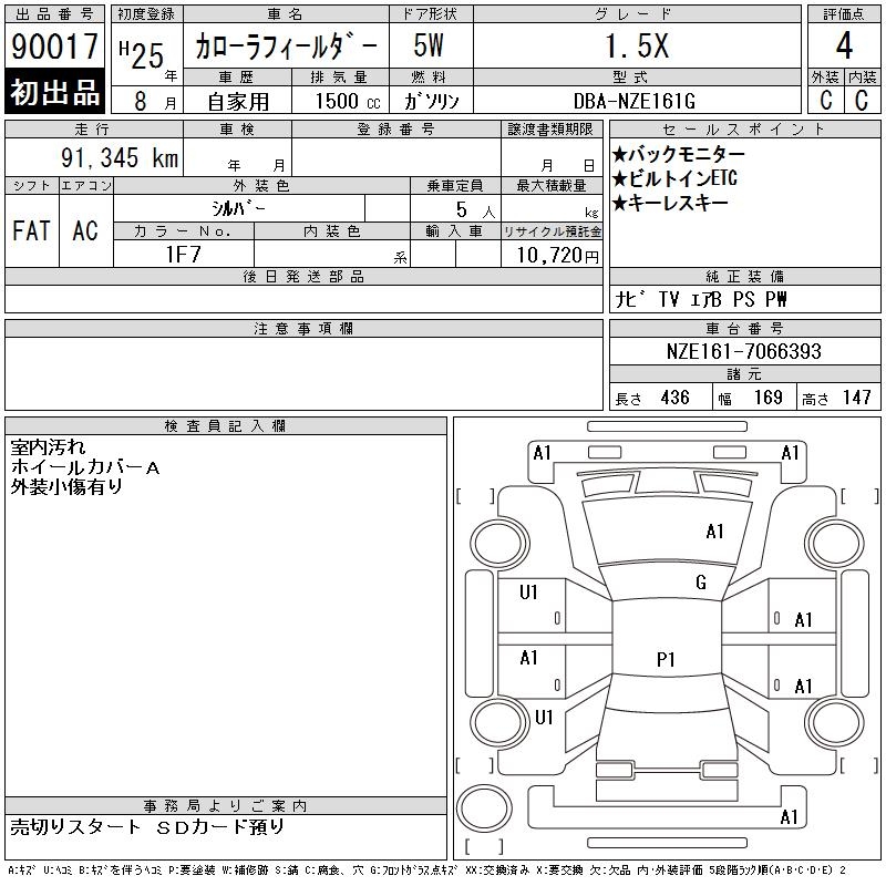 TOYOTA COROLLA FIELDER - лот 90017