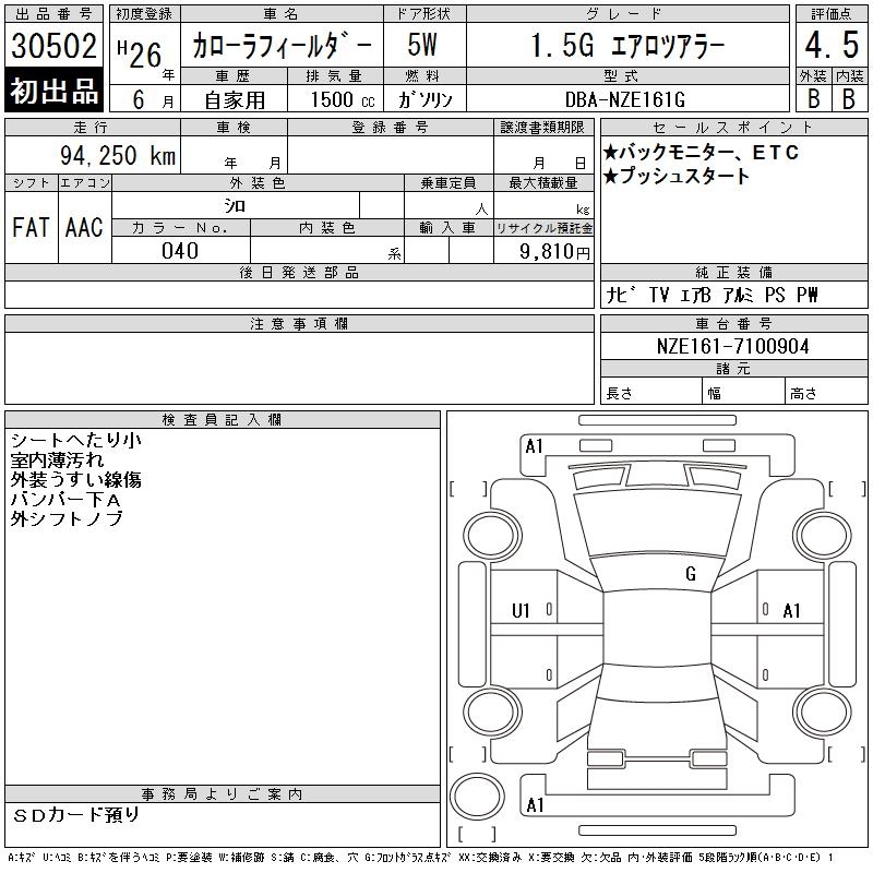TOYOTA COROLLA FIELDER - лот 30502