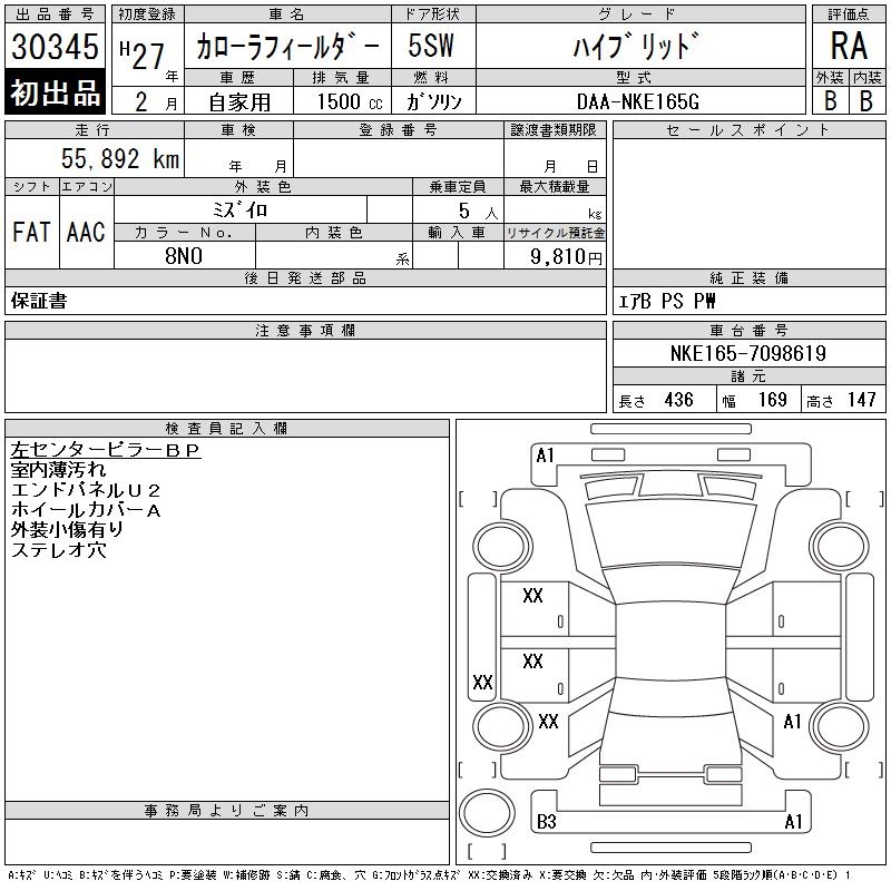 TOYOTA COROLLA FIELDER - лот 30345
