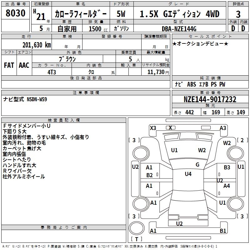 TOYOTA COROLLA FIELDER - лот 8030