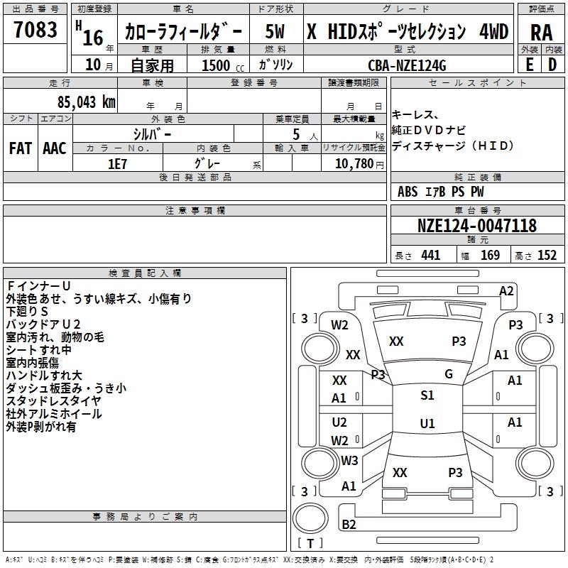 TOYOTA COROLLA FIELDER - лот 7083