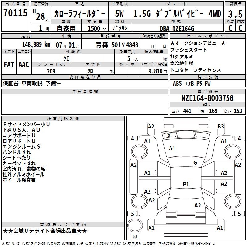 TOYOTA COROLLA FIELDER - лот 70115