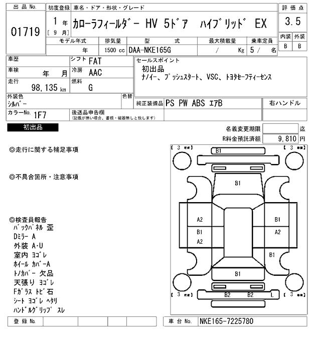TOYOTA COROLLA FIELDER - лот 1719