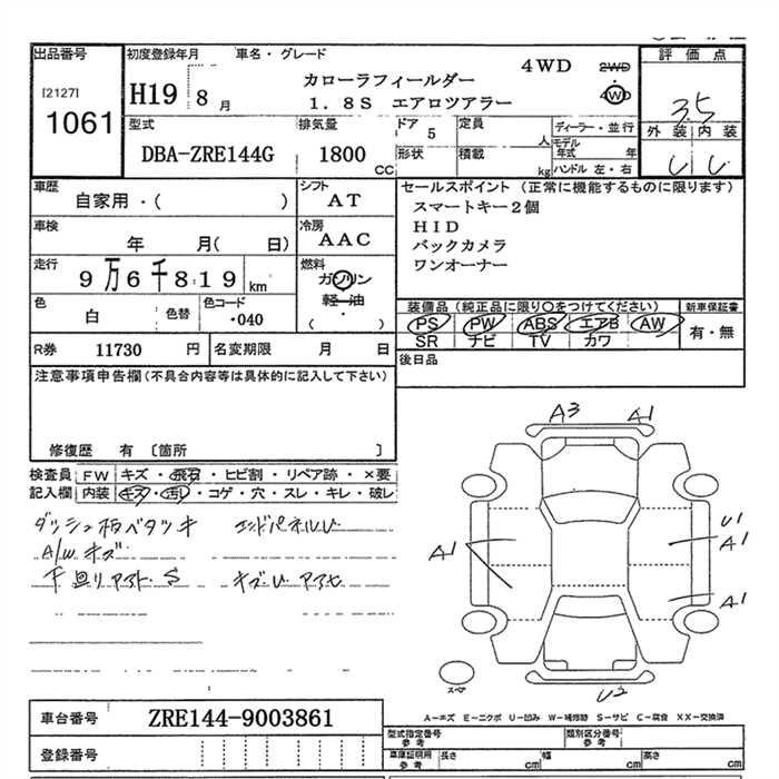 TOYOTA COROLLA FIELDER - лот 1061