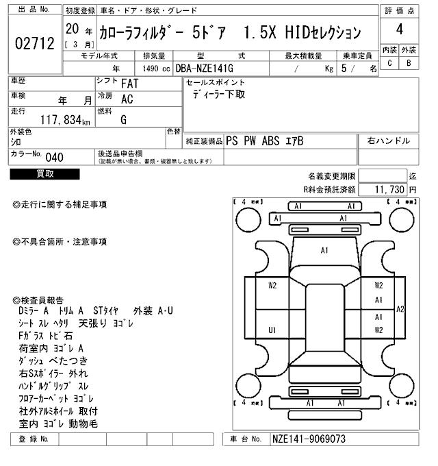 TOYOTA COROLLA FIELDER - лот 2712