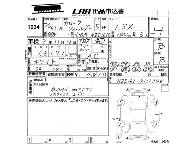 TOYOTA COROLLA FIELDER - лот 1034