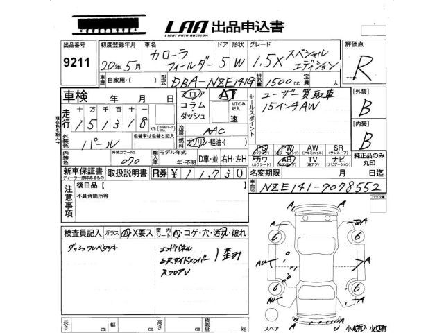 TOYOTA COROLLA FIELDER - лот 9211