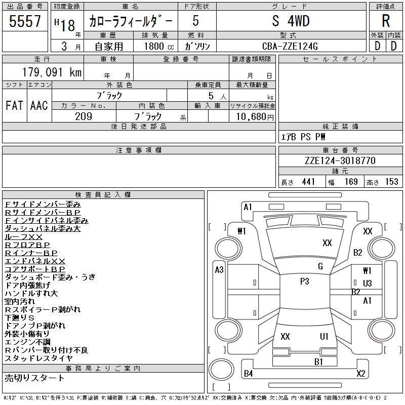 TOYOTA COROLLA FIELDER - лот 5557