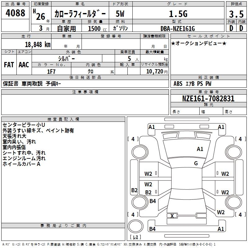 TOYOTA COROLLA FIELDER - лот 4088
