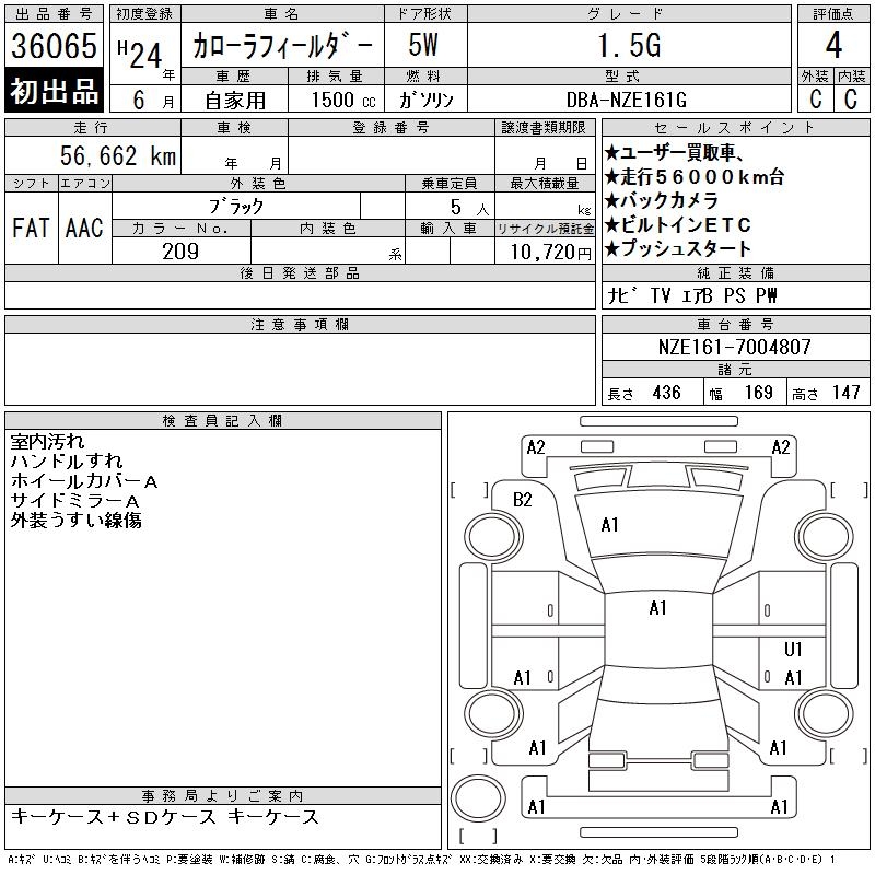 TOYOTA COROLLA FIELDER - лот 36065
