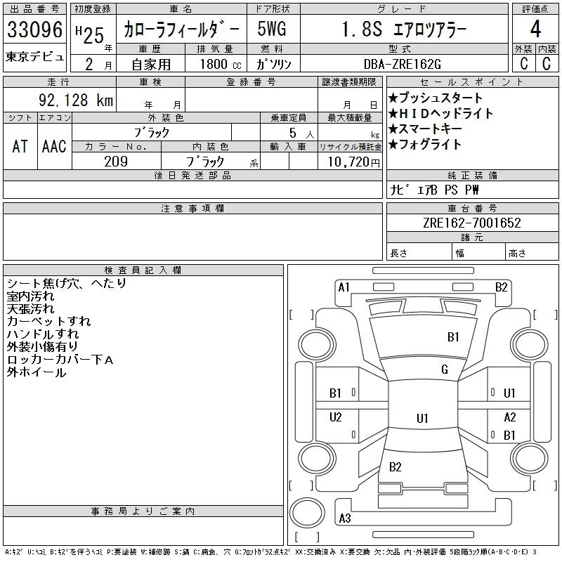 TOYOTA COROLLA FIELDER - лот 33096